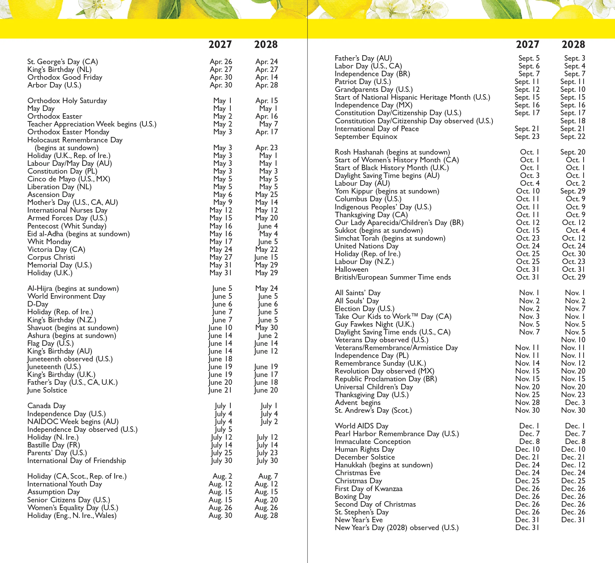 2027-28 Amalfi Lemons 2-Year Pocket Planner—