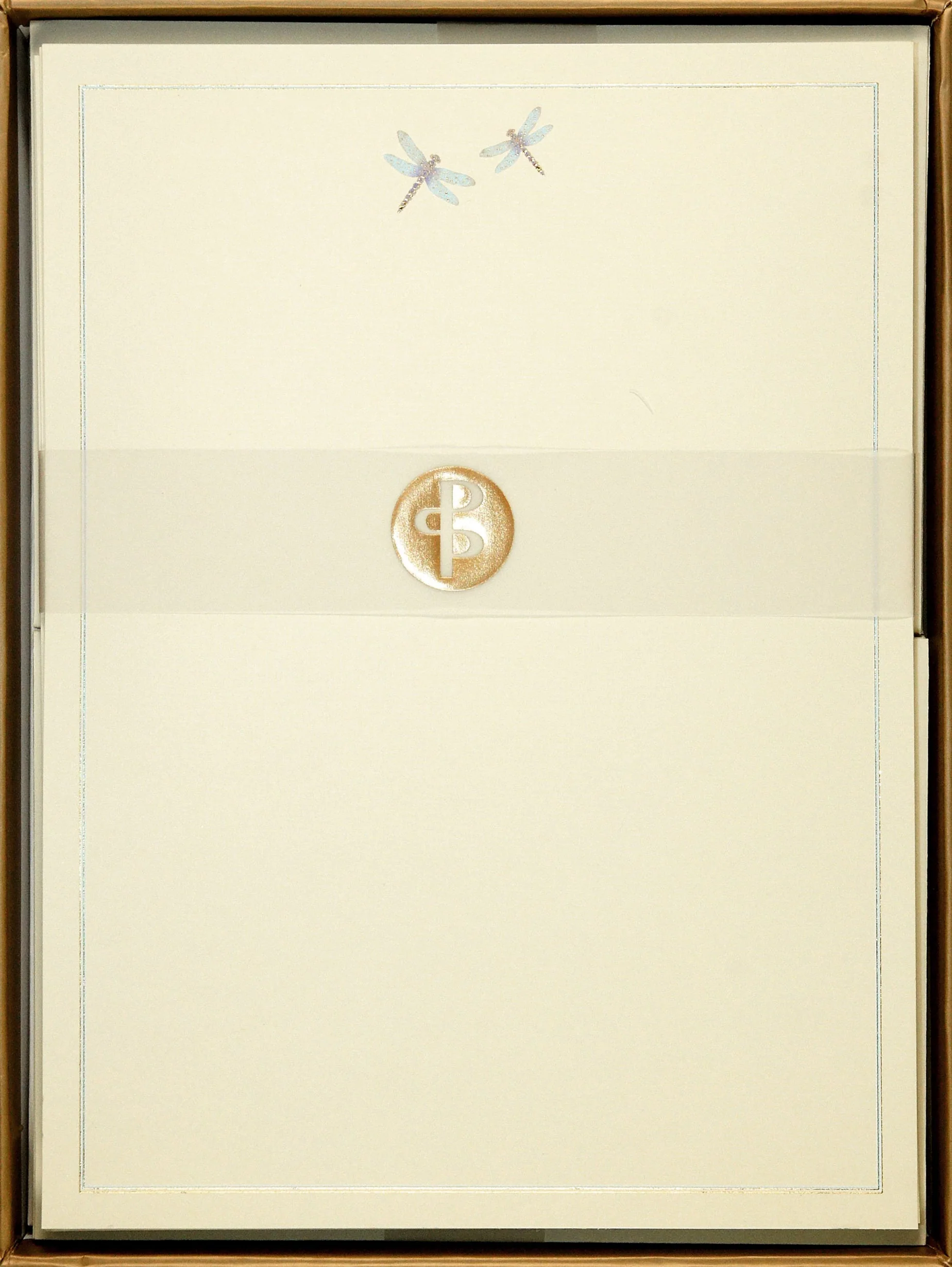 Twin dragonflies grace the top of each crisp stationery sheet.