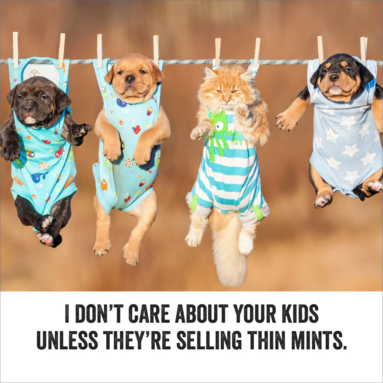 Sayings are accompanied by photos of zany animals in hilarious poses.