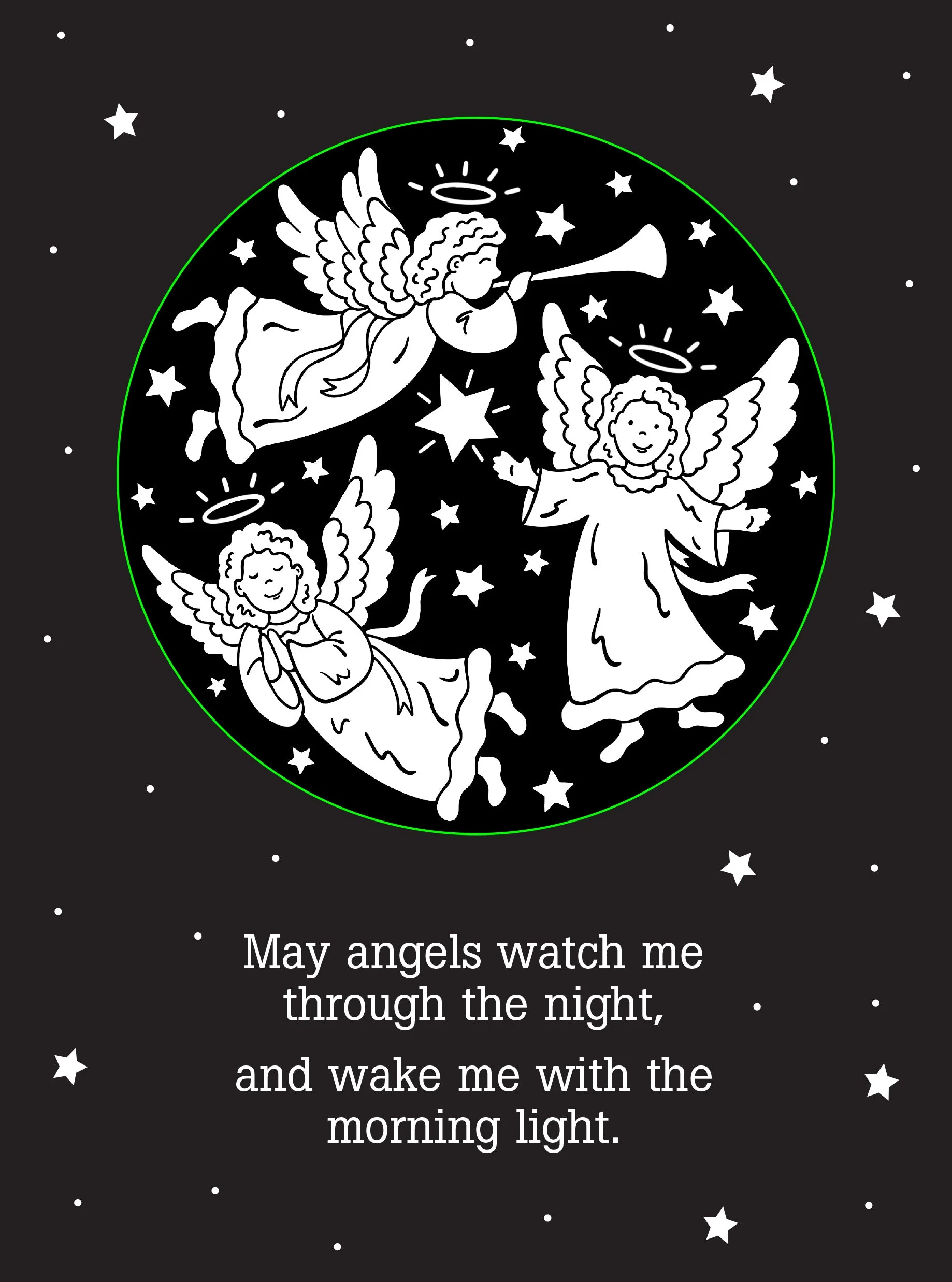 Simply shine the beam of a light (not included) through the ''windows'' on each page to cast pictures on the wall as you read the prayer within.