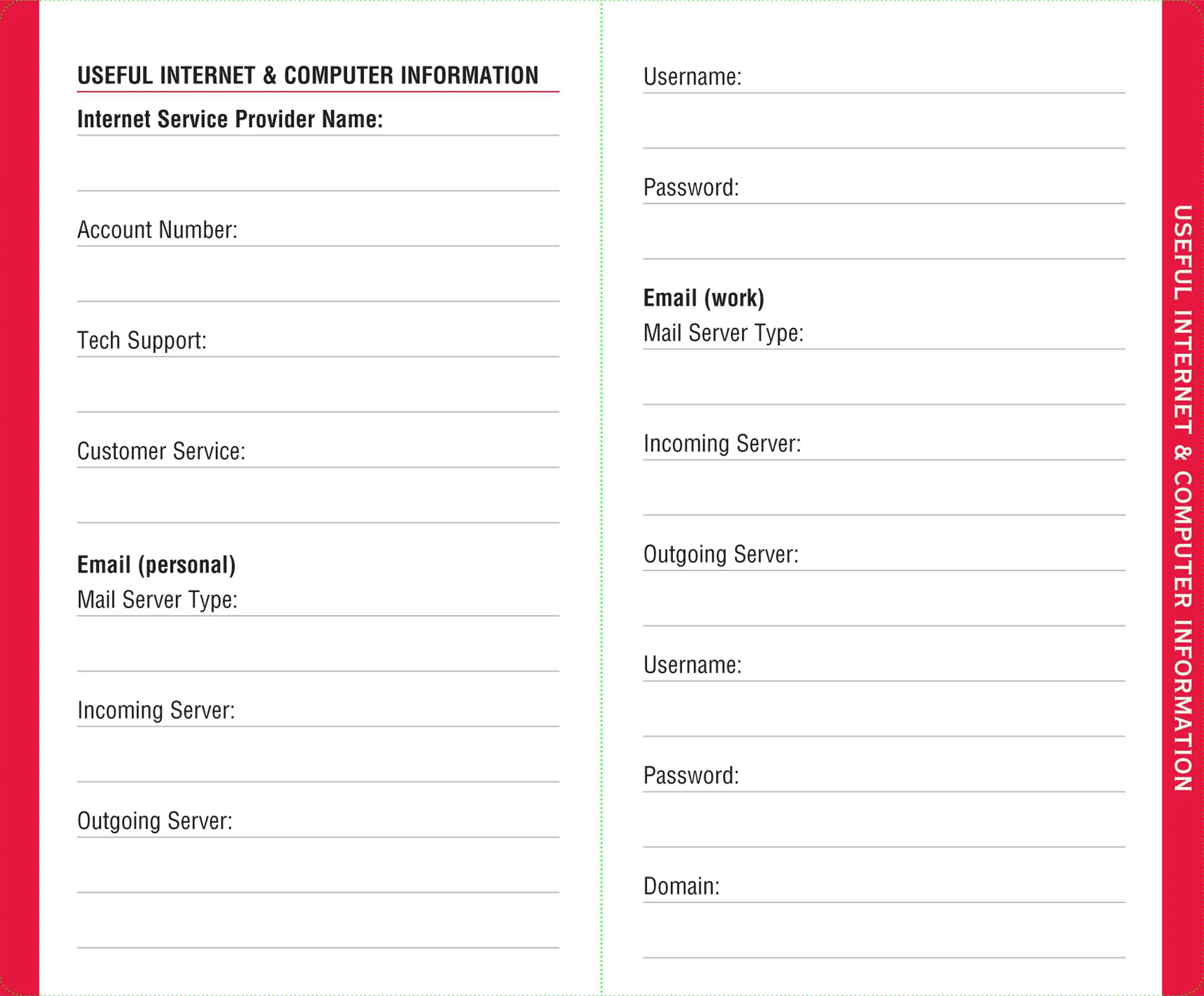 Tabbed alphabetical pages that provide space for noting website addresses, usernames, passwords, and extra details.