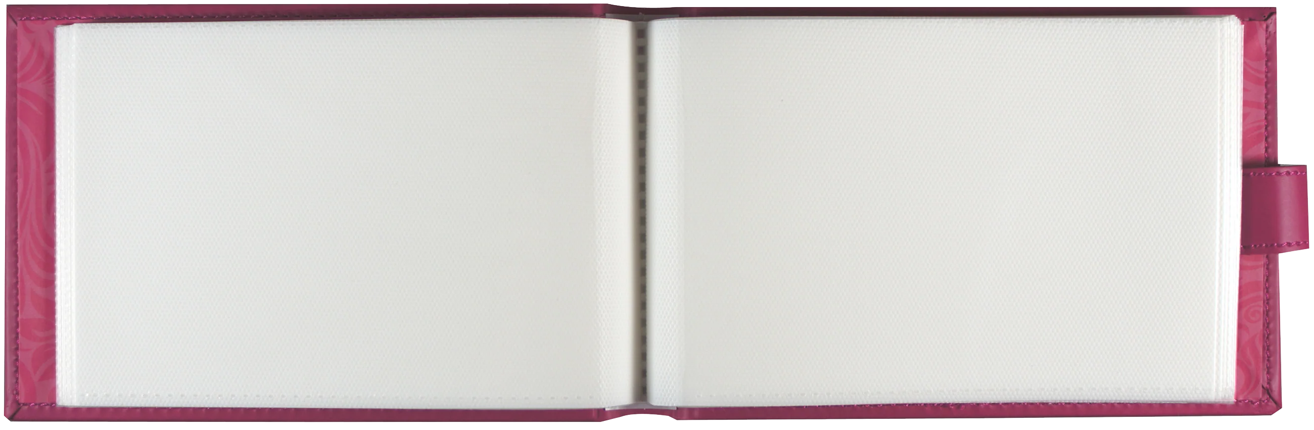 Bright raspberry color ensures album won't get lost in your bag or backpack.