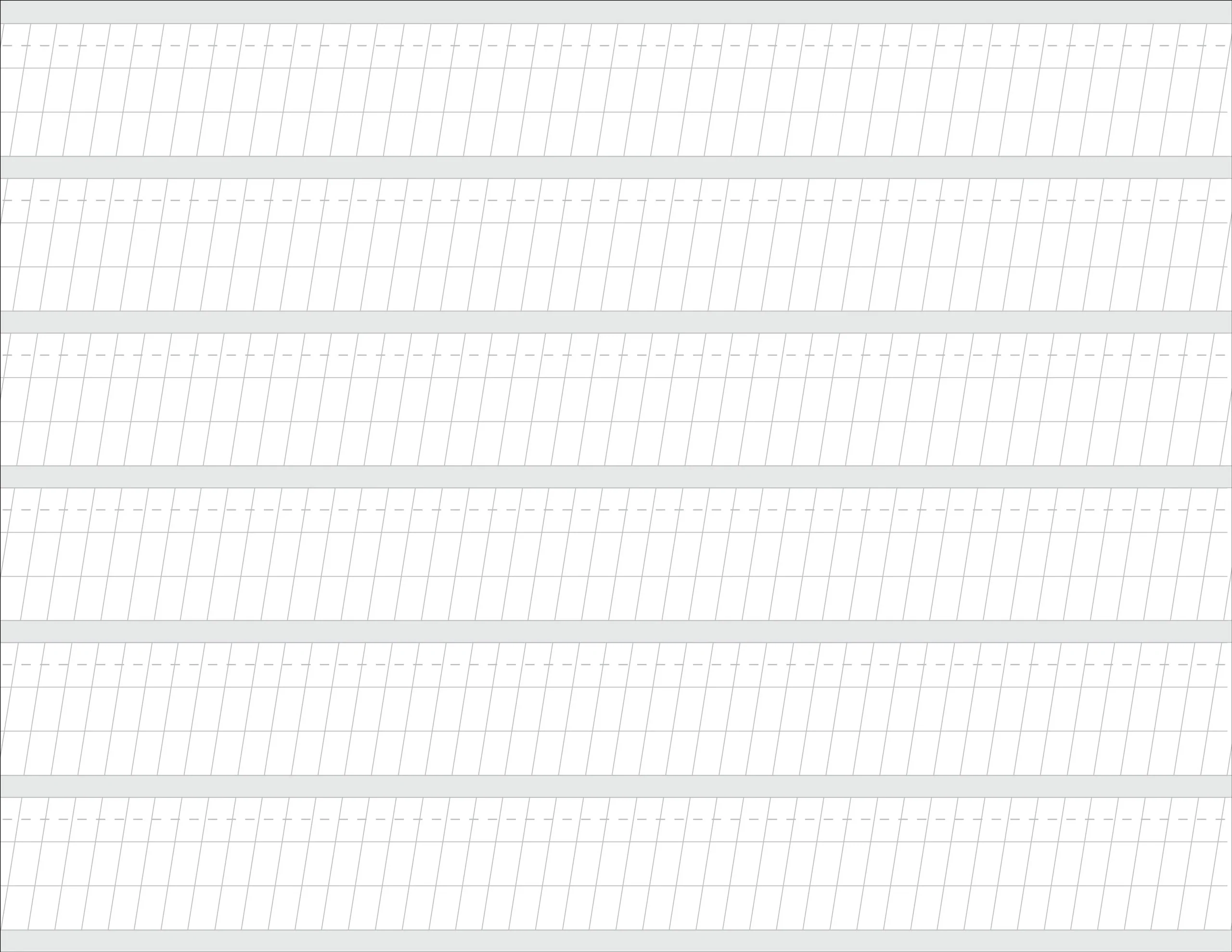 - Pages come with printed guidelines for proportion and slant.