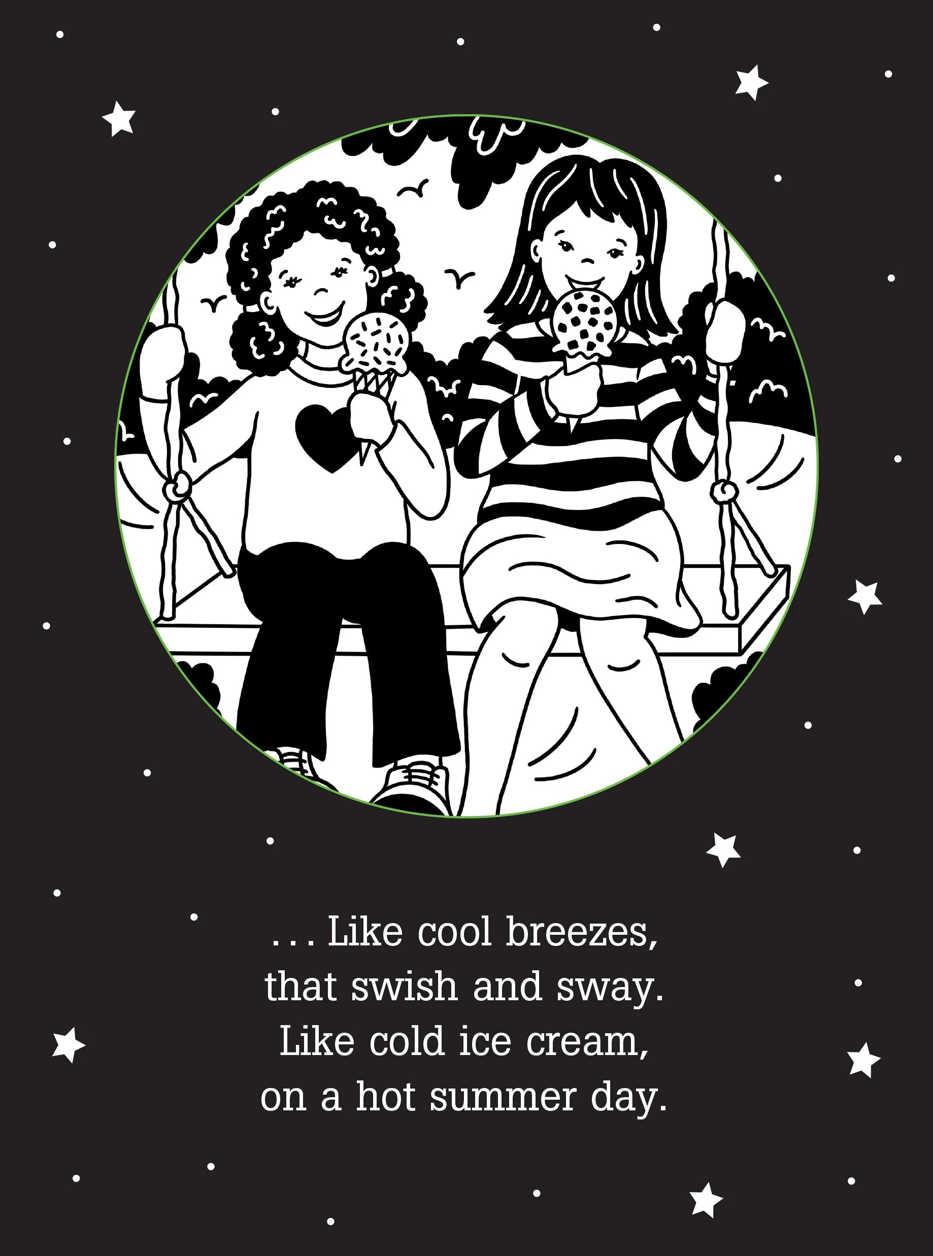 Simply shine the beam of a light (not included) through the ''windows'' on each page to cast the pictures on the wall as you read the rhymes within.